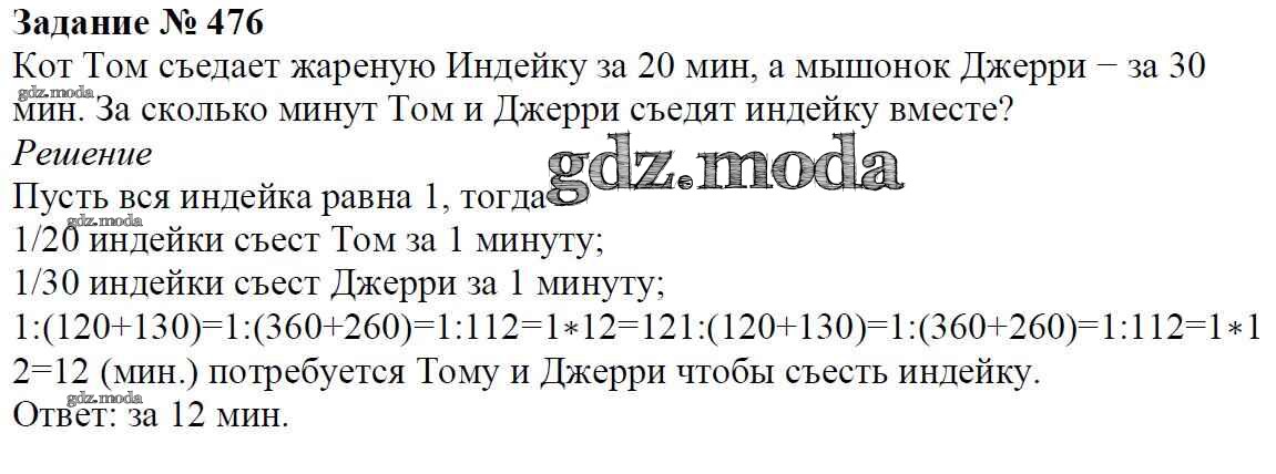 ОТВЕТ на задание № 476 Учебник по Математике 6 класс Мерзляк Алгоритм успеха