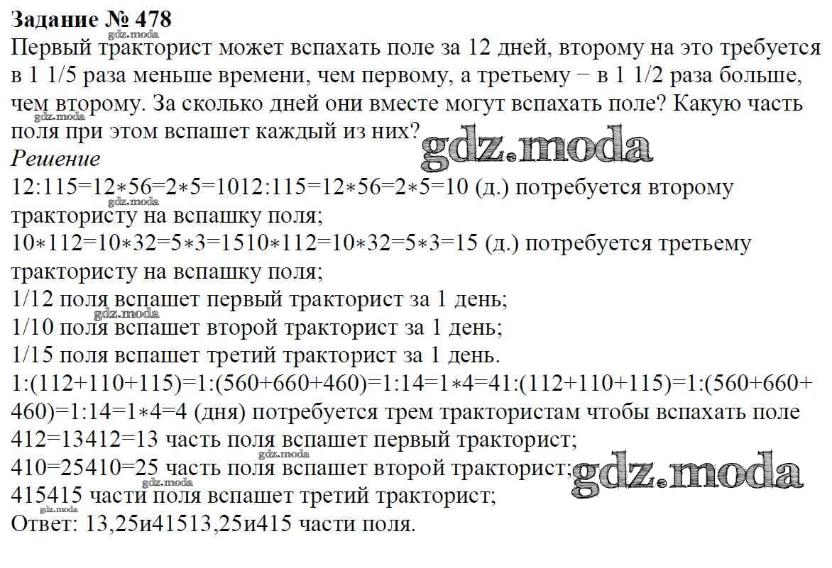 ОТВЕТ на задание № 478 Учебник по Математике 6 класс Мерзляк Алгоритм успеха