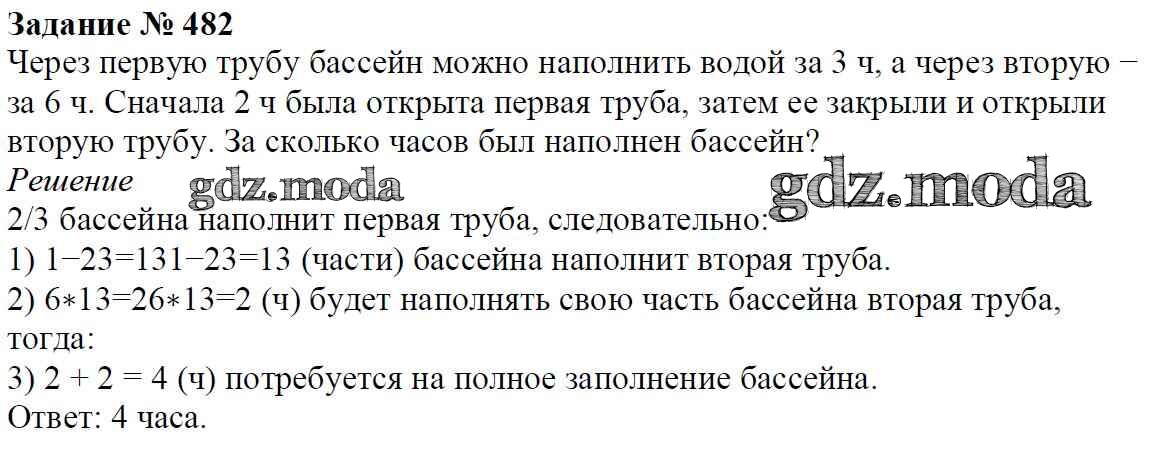 ОТВЕТ на задание № 482 Учебник по Математике 6 класс Мерзляк Алгоритм успеха