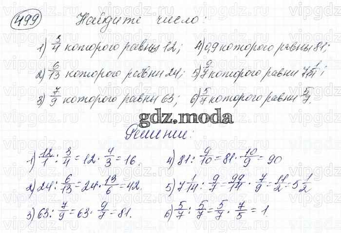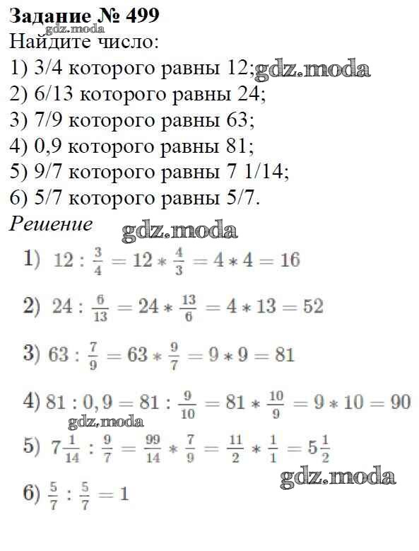 ОТВЕТ на задание № 499 Учебник по Математике 6 класс Мерзляк Алгоритм успеха