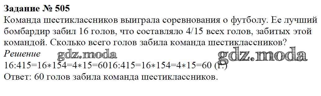 ОТВЕТ на задание № 505 Учебник по Математике 6 класс Мерзляк Алгоритм успеха