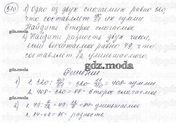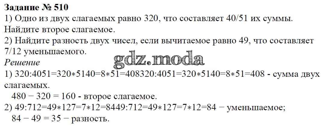 ОТВЕТ на задание № 510 Учебник по Математике 6 класс Мерзляк Алгоритм успеха