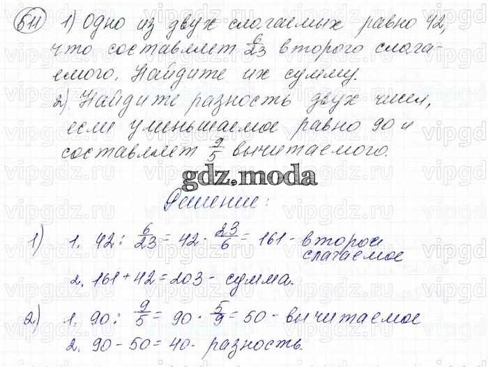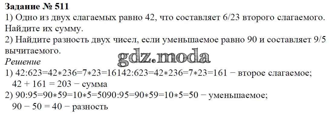 ОТВЕТ на задание № 511 Учебник по Математике 6 класс Мерзляк Алгоритм успеха