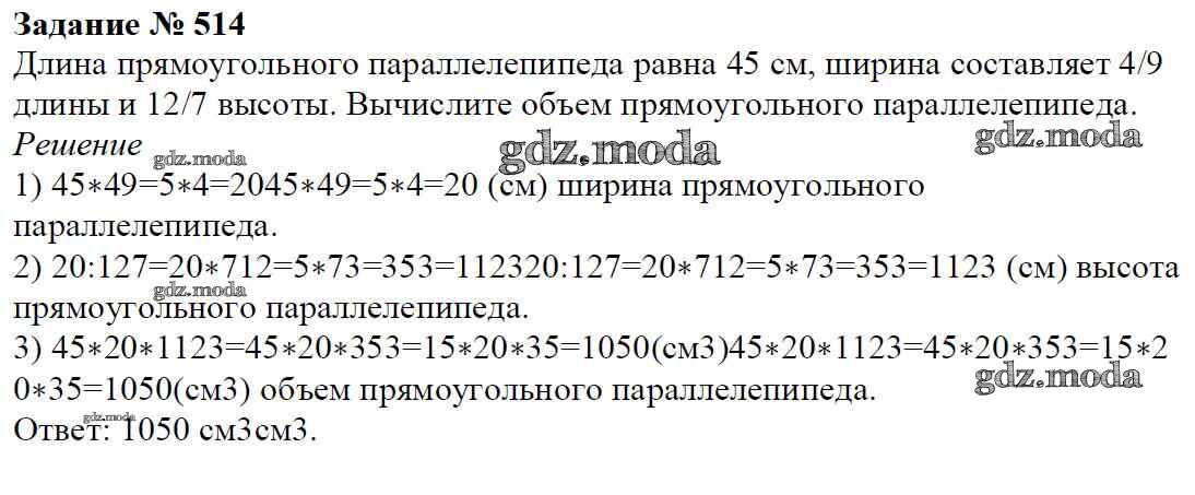 ОТВЕТ на задание № 514 Учебник по Математике 6 класс Мерзляк Алгоритм успеха