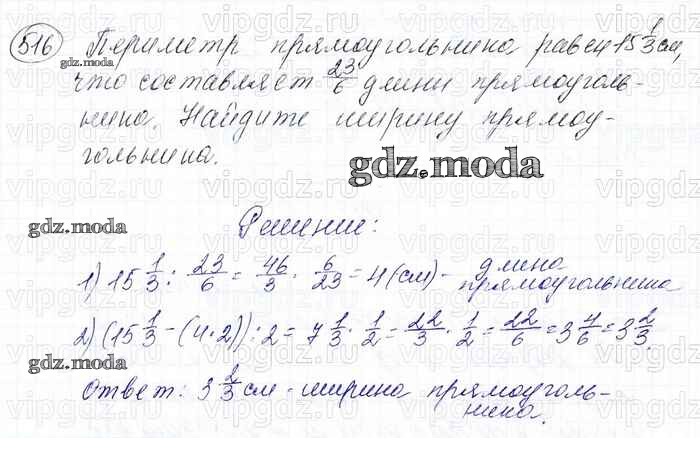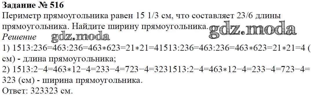 ОТВЕТ на задание № 516 Учебник по Математике 6 класс Мерзляк Алгоритм успеха