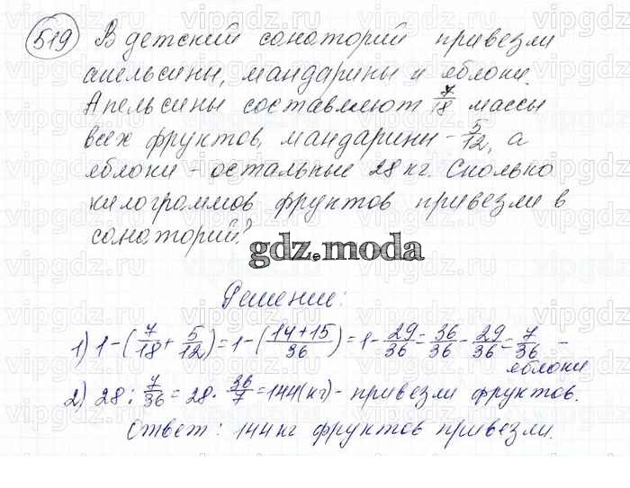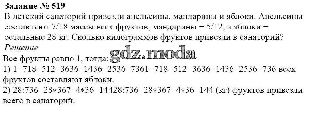 ОТВЕТ на задание № 519 Учебник по Математике 6 класс Мерзляк Алгоритм успеха