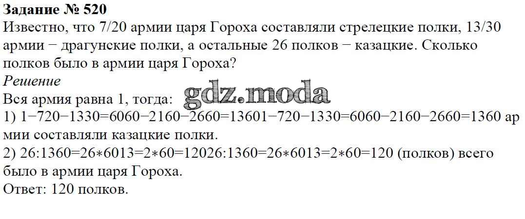 ОТВЕТ на задание № 520 Учебник по Математике 6 класс Мерзляк Алгоритм успеха