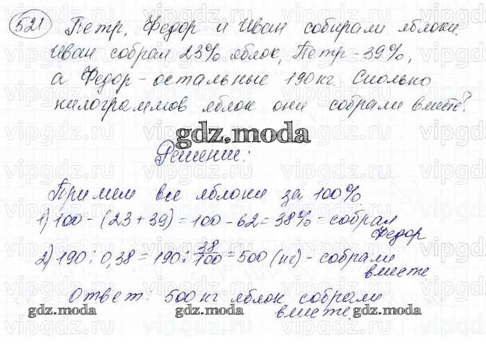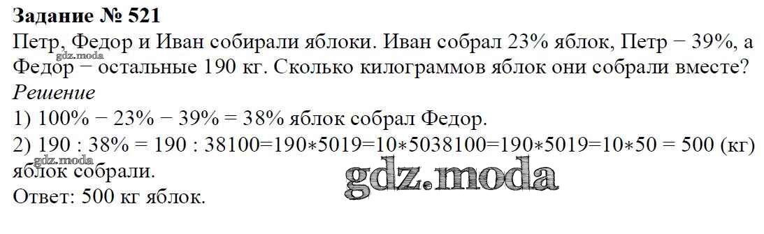 ОТВЕТ на задание № 521 Учебник по Математике 6 класс Мерзляк Алгоритм успеха