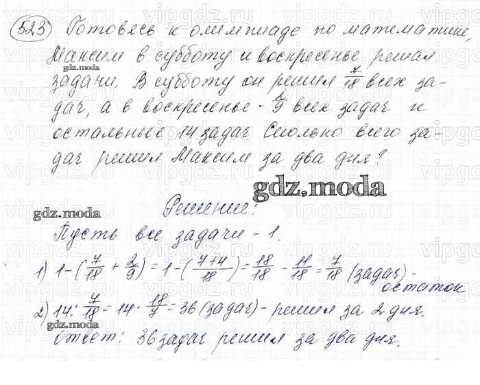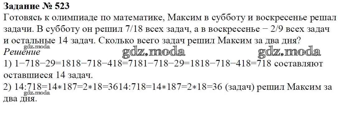 ОТВЕТ на задание № 523 Учебник по Математике 6 класс Мерзляк Алгоритм успеха