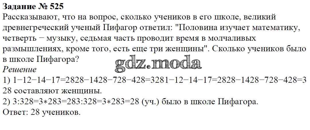 ОТВЕТ на задание № 525 Учебник по Математике 6 класс Мерзляк Алгоритм успеха
