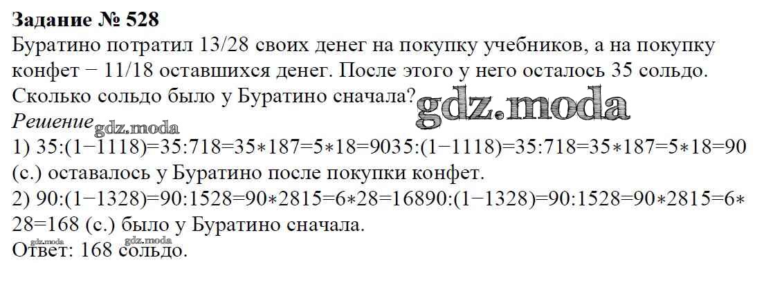 ОТВЕТ на задание № 528 Учебник по Математике 6 класс Мерзляк Алгоритм успеха