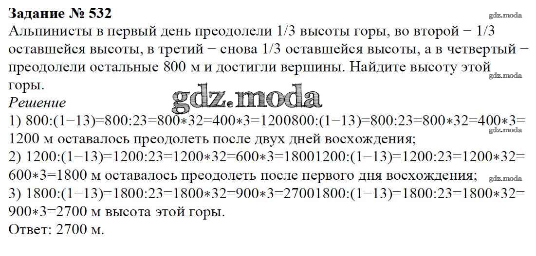 ОТВЕТ на задание № 532 Учебник по Математике 6 класс Мерзляк Алгоритм успеха