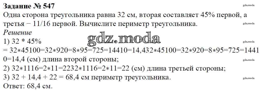 ОТВЕТ на задание № 547 Учебник по Математике 6 класс Мерзляк Алгоритм успеха