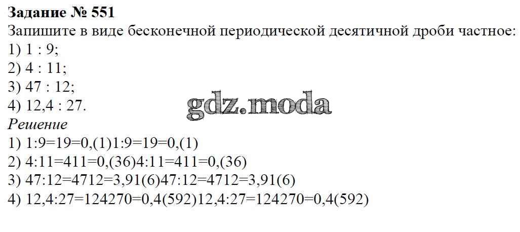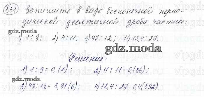 ОТВЕТ на задание № 551 Учебник по Математике 6 класс Мерзляк Алгоритм успеха