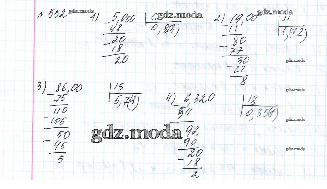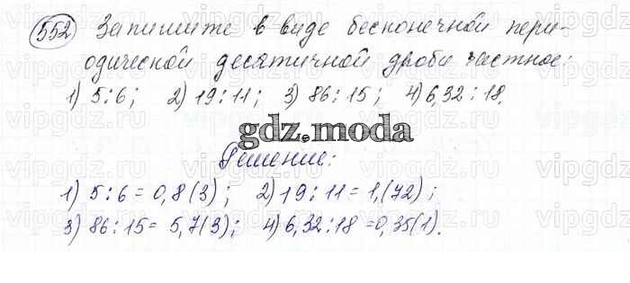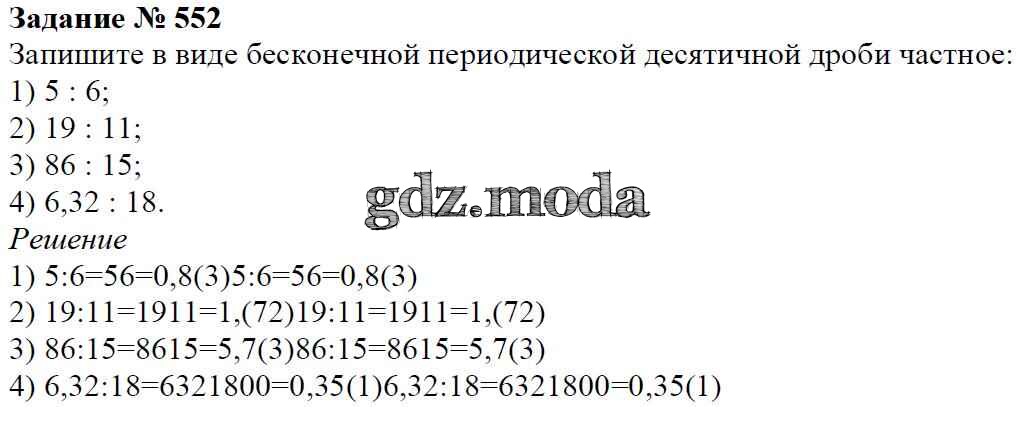 ОТВЕТ на задание № 552 Учебник по Математике 6 класс Мерзляк Алгоритм успеха