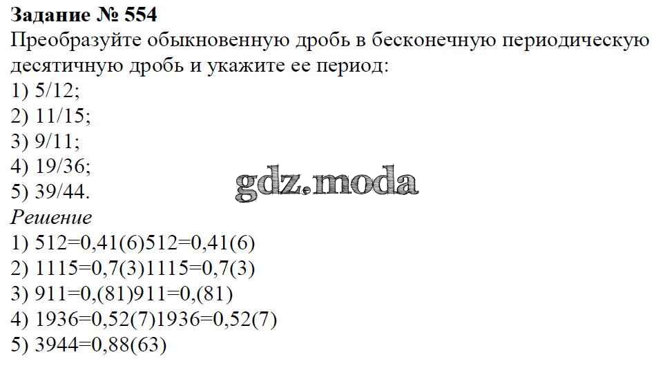 ОТВЕТ на задание № 554 Учебник по Математике 6 класс Мерзляк Алгоритм успеха