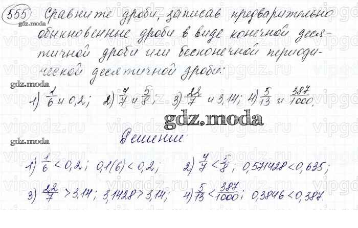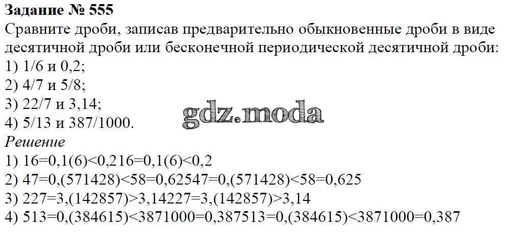 ОТВЕТ на задание № 555 Учебник по Математике 6 класс Мерзляк Алгоритм успеха