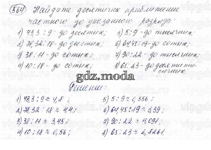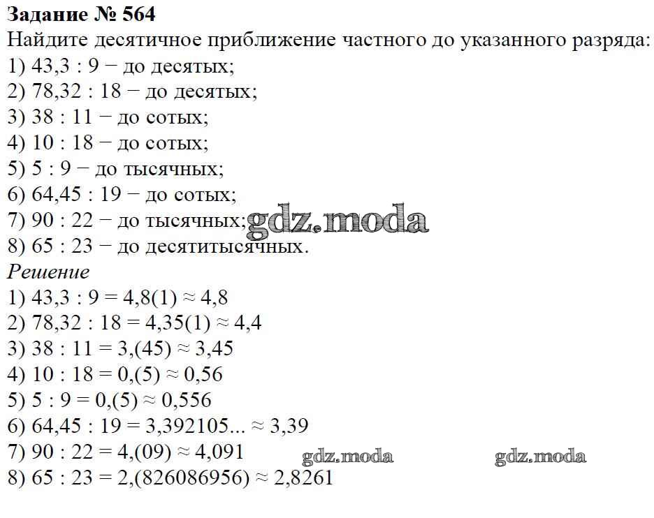 ОТВЕТ на задание № 564 Учебник по Математике 6 класс Мерзляк Алгоритм успеха
