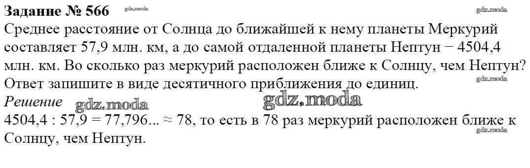 ОТВЕТ на задание № 566 Учебник по Математике 6 класс Мерзляк Алгоритм успеха