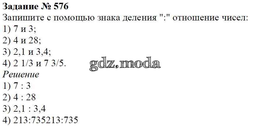 ОТВЕТ на задание № 576 Учебник по Математике 6 класс Мерзляк Алгоритм успеха