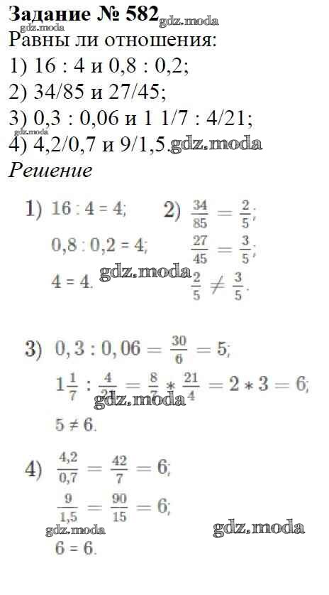 ОТВЕТ на задание № 582 Учебник по Математике 6 класс Мерзляк Алгоритм успеха