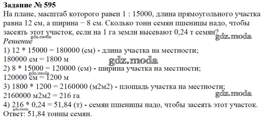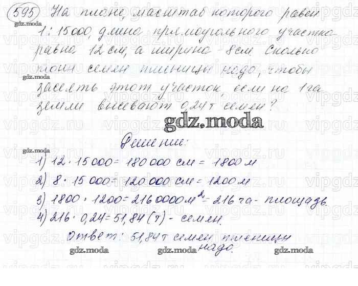 ОТВЕТ на задание № 595 Учебник по Математике 6 класс Мерзляк Алгоритм успеха