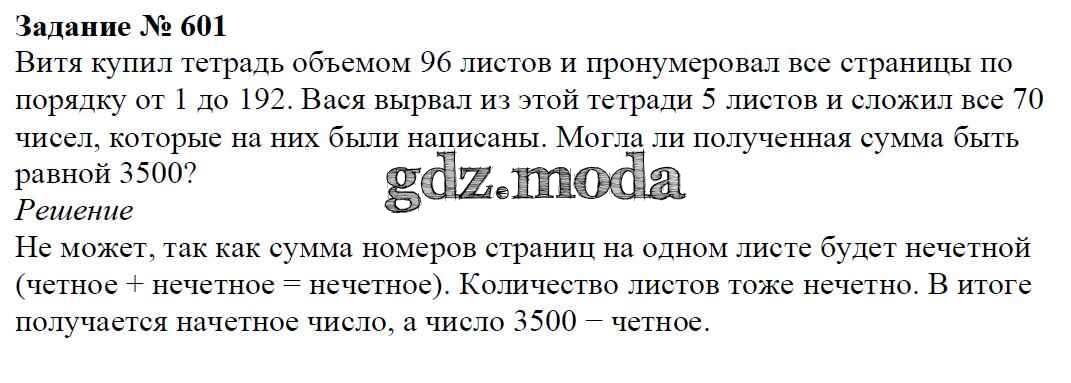 ОТВЕТ на задание № 601 Учебник по Математике 6 класс Мерзляк Алгоритм успеха