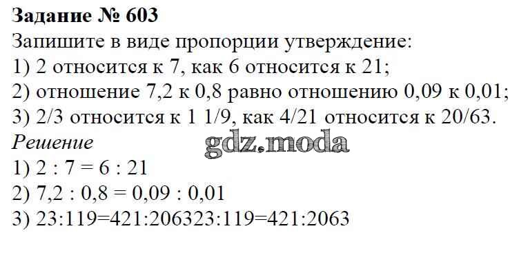 ОТВЕТ на задание № 603 Учебник по Математике 6 класс Мерзляк Алгоритм успеха