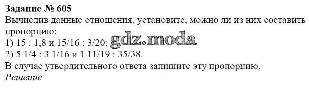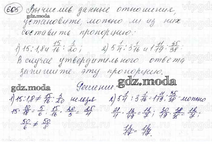 ОТВЕТ на задание № 605 Учебник по Математике 6 класс Мерзляк Алгоритм успеха