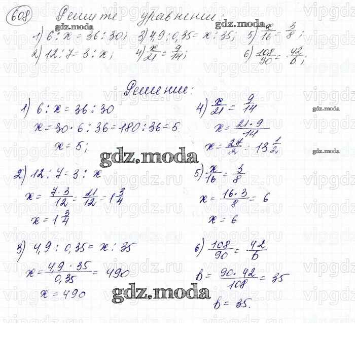 ОТВЕТ на задание № 608 Учебник по Математике 6 класс Мерзляк Алгоритм успеха
