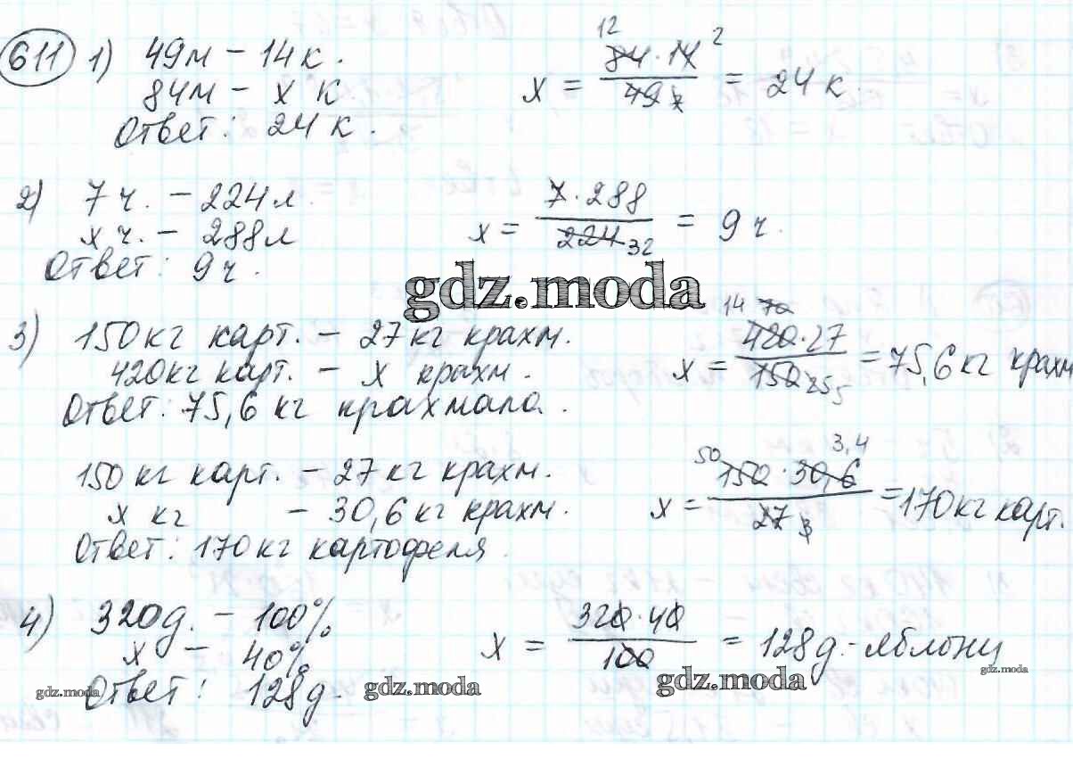 ОТВЕТ на задание № 611 Учебник по Математике 6 класс Мерзляк Алгоритм успеха