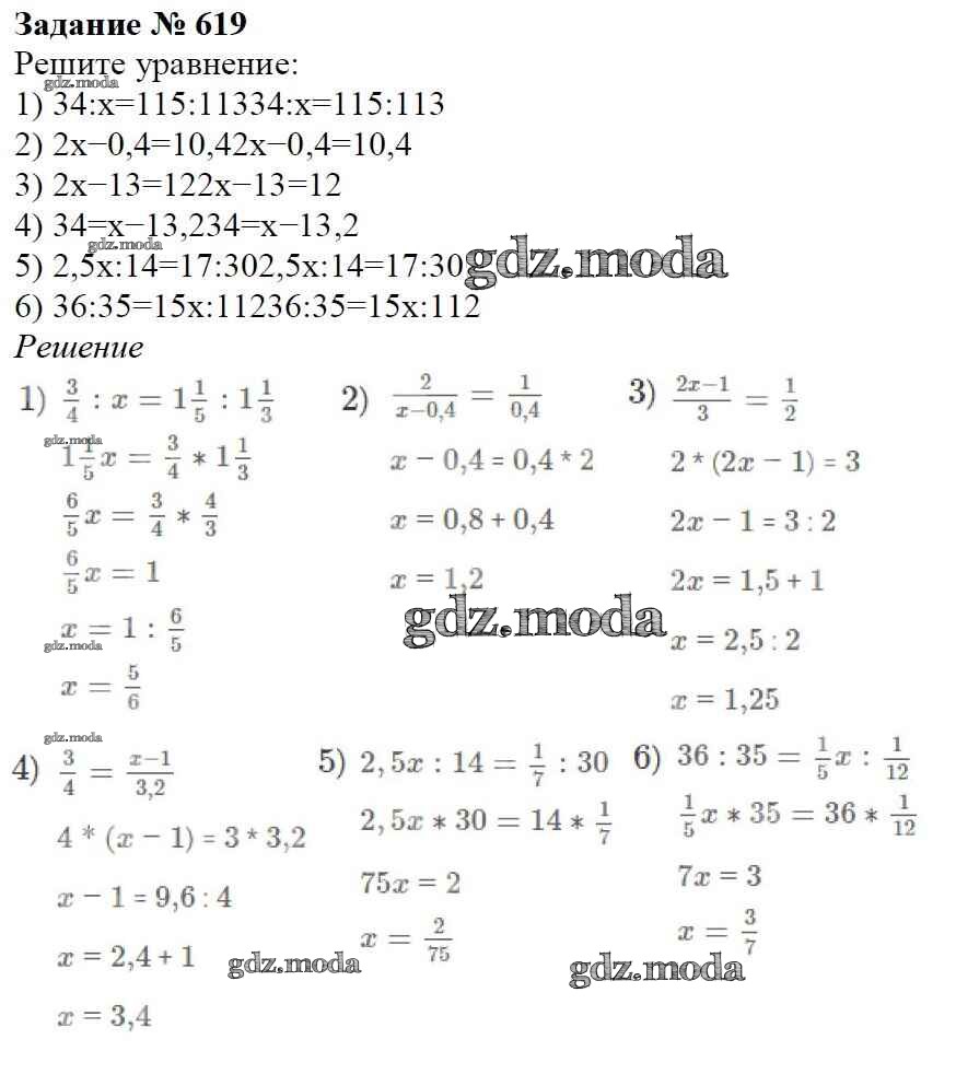 ОТВЕТ на задание № 619 Учебник по Математике 6 класс Мерзляк Алгоритм успеха
