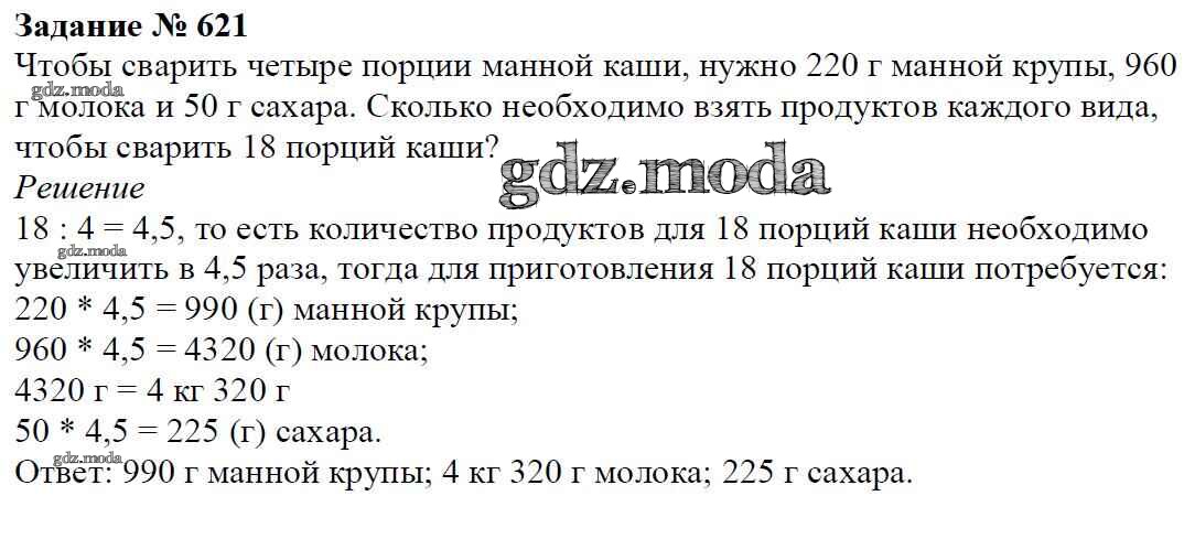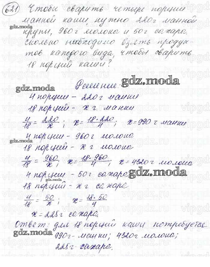 ОТВЕТ на задание № 621 Учебник по Математике 6 класс Мерзляк Алгоритм успеха