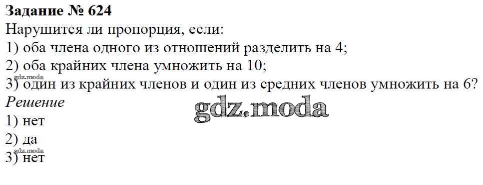 ОТВЕТ на задание № 624 Учебник по Математике 6 класс Мерзляк Алгоритм успеха