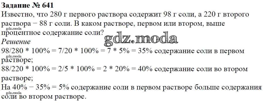 ОТВЕТ на задание № 641 Учебник по Математике 6 класс Мерзляк Алгоритм успеха