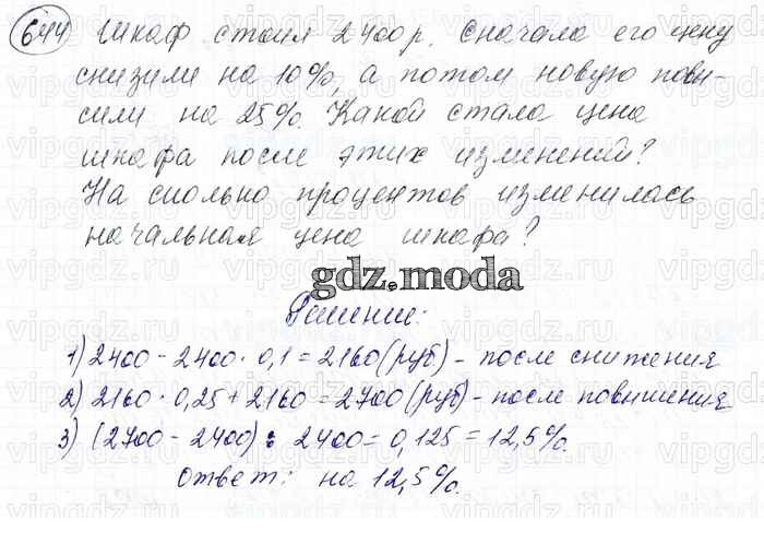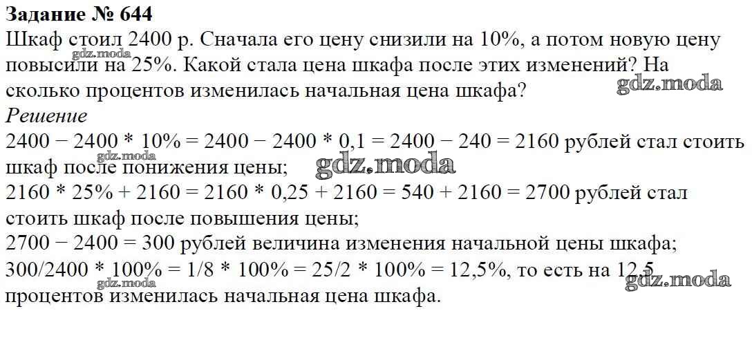 ОТВЕТ на задание № 644 Учебник по Математике 6 класс Мерзляк Алгоритм успеха