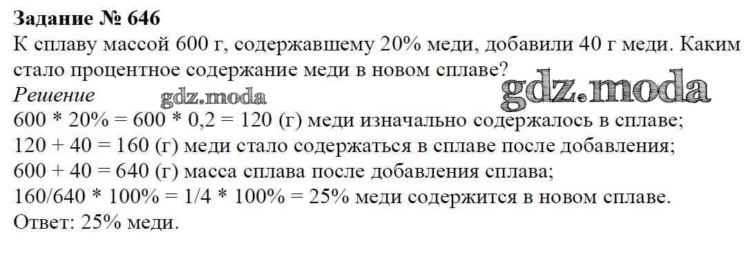ОТВЕТ на задание № 646 Учебник по Математике 6 класс Мерзляк Алгоритм успеха