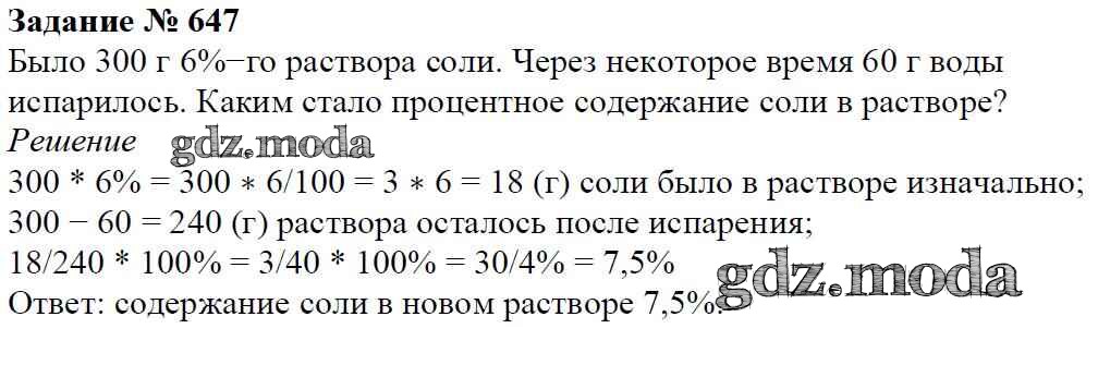 ОТВЕТ на задание № 647 Учебник по Математике 6 класс Мерзляк Алгоритм успеха