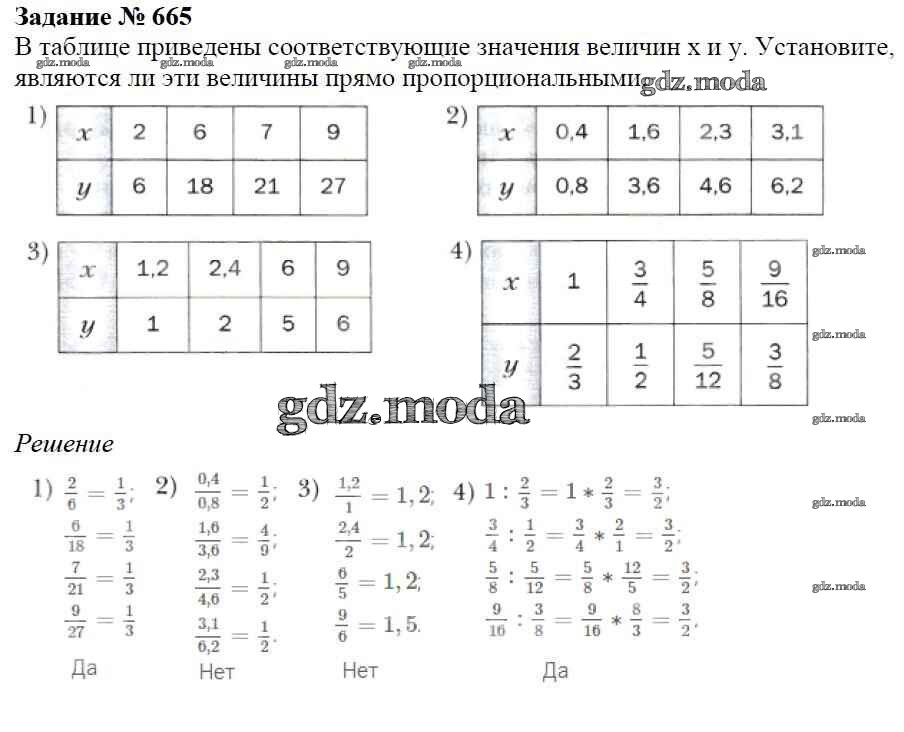 ОТВЕТ на задание № 665 Учебник по Математике 6 класс Мерзляк Алгоритм успеха