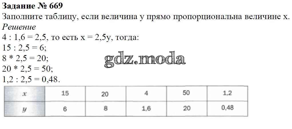 ОТВЕТ на задание № 669 Учебник по Математике 6 класс Мерзляк Алгоритм успеха