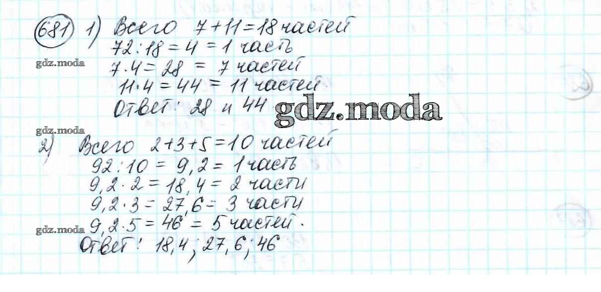 ОТВЕТ на задание № 681 Учебник по Математике 6 класс Мерзляк Алгоритм успеха