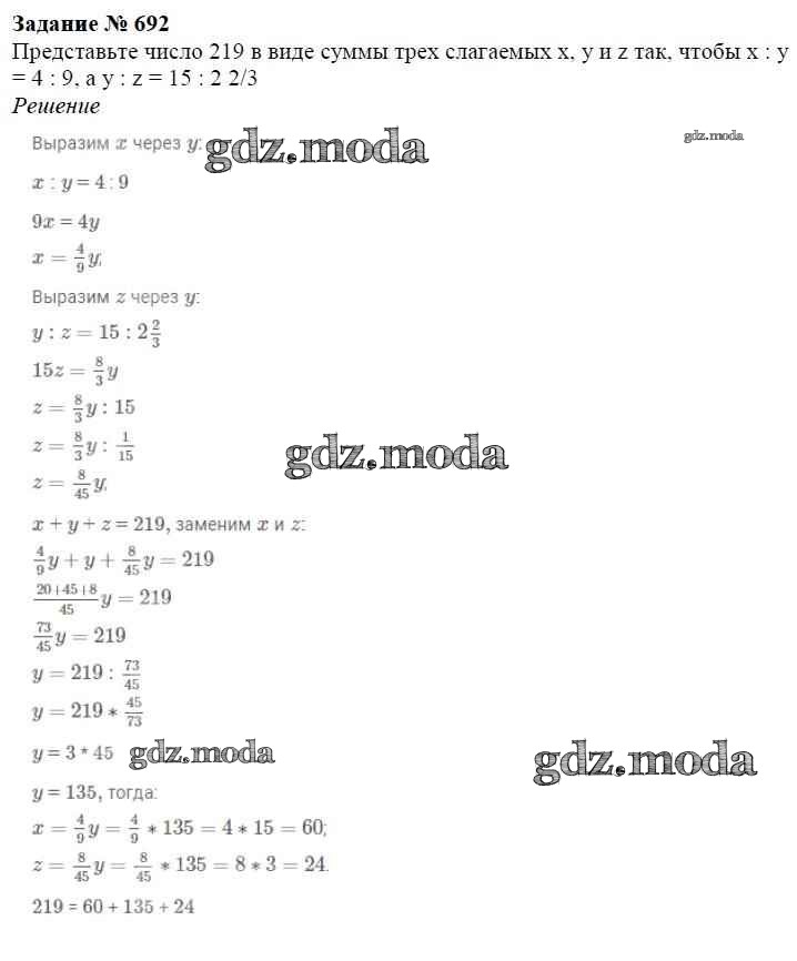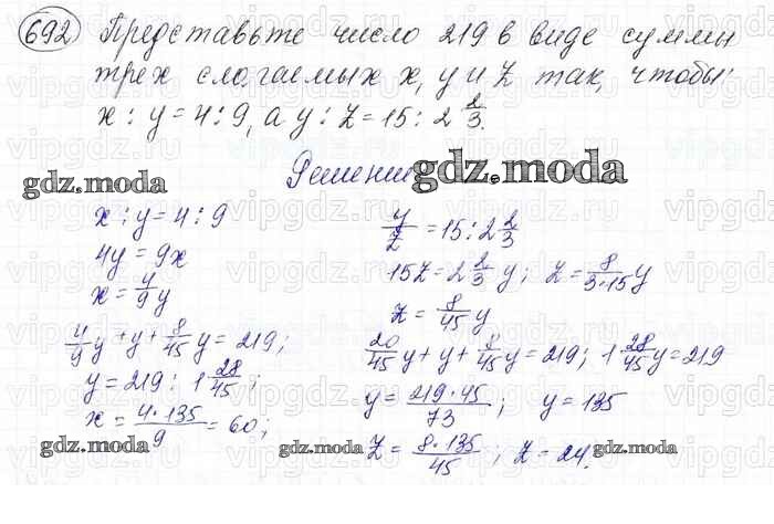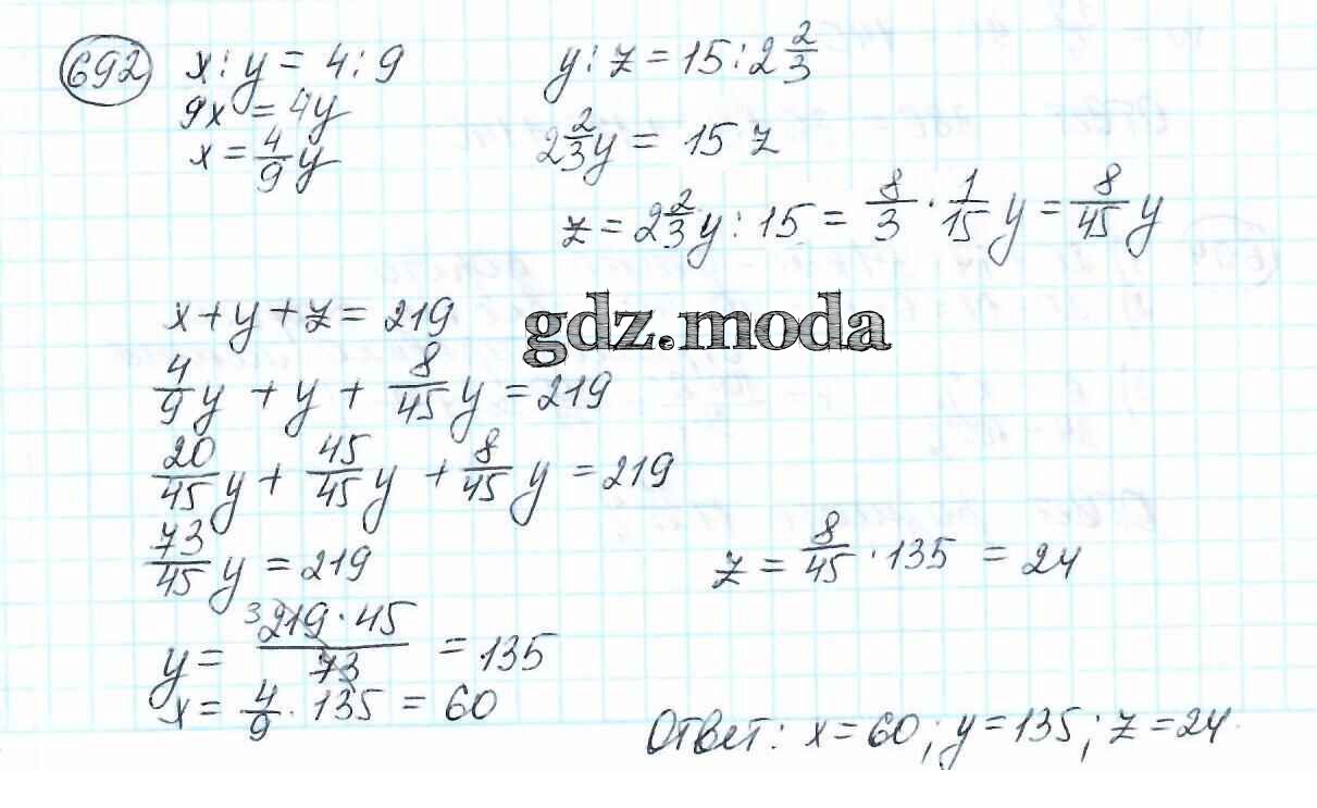 ОТВЕТ на задание № 692 Учебник по Математике 6 класс Мерзляк Алгоритм успеха