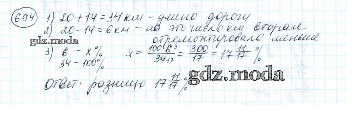 ОТВЕТ на задание № 694 Учебник по Математике 6 класс Мерзляк Алгоритм успеха