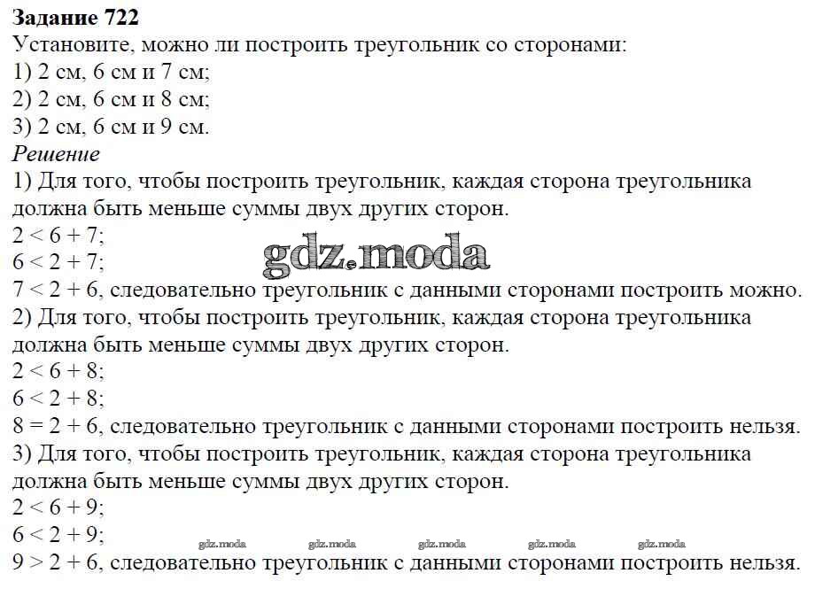 ОТВЕТ на задание № 722 Учебник по Математике 6 класс Мерзляк Алгоритм успеха