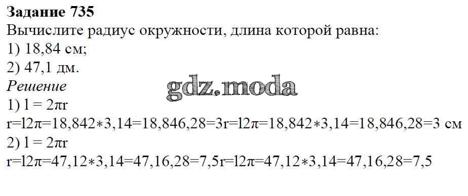 ОТВЕТ на задание № 735 Учебник по Математике 6 класс Мерзляк Алгоритм успеха