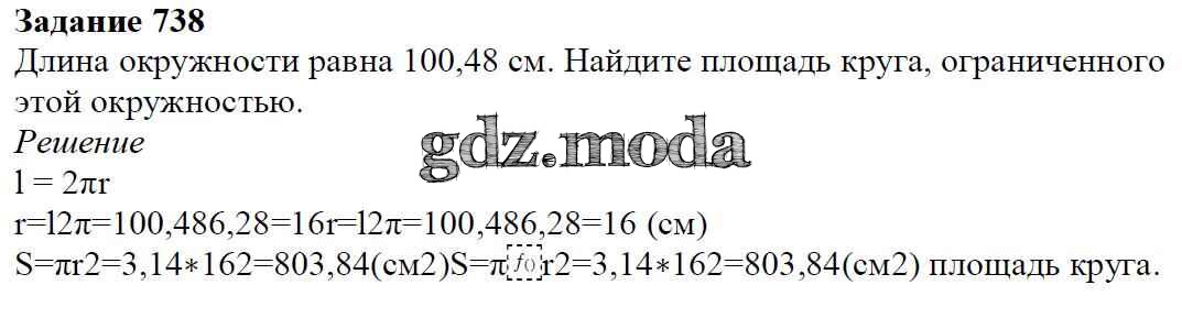 ОТВЕТ на задание № 738 Учебник по Математике 6 класс Мерзляк Алгоритм успеха