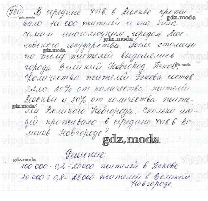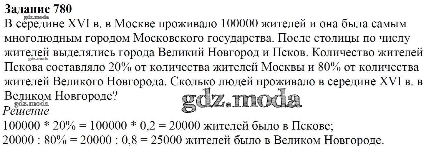 ОТВЕТ на задание № 780 Учебник по Математике 6 класс Мерзляк Алгоритм успеха