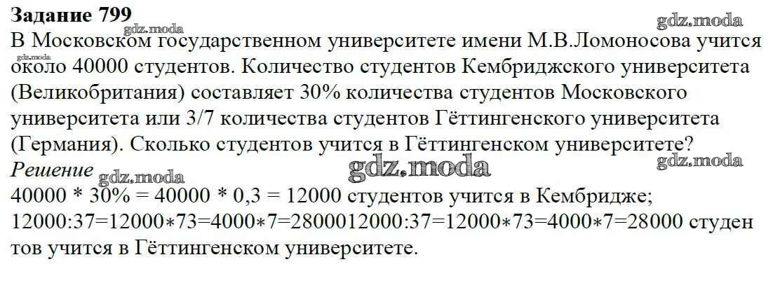 ОТВЕТ на задание № 799 Учебник по Математике 6 класс Мерзляк Алгоритм успеха
