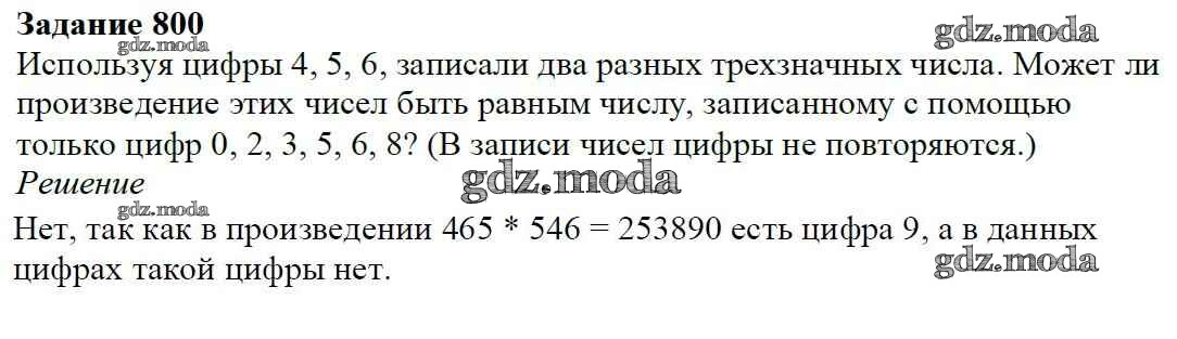 ОТВЕТ на задание № 800 Учебник по Математике 6 класс Мерзляк Алгоритм успеха
