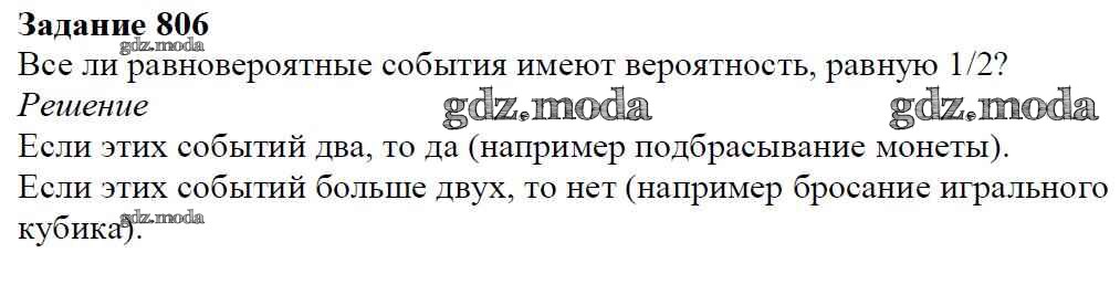 ОТВЕТ на задание № 806 Учебник по Математике 6 класс Мерзляк Алгоритм успеха